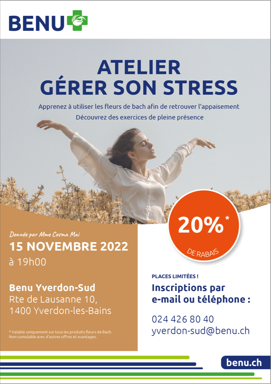 « Atelier gérer son stress » à la Pharmacie Benu à Yverdon le 15 novembre 2022